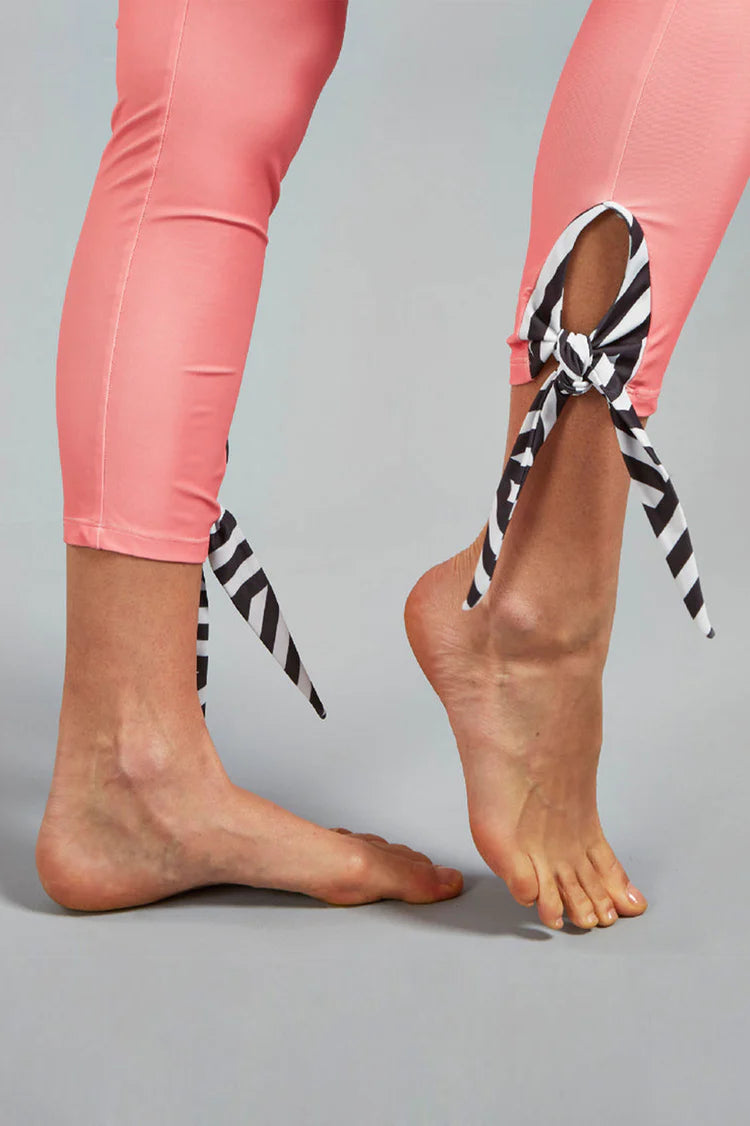 PANT: ankle length leggings, high rise, with bow detail to leg.
